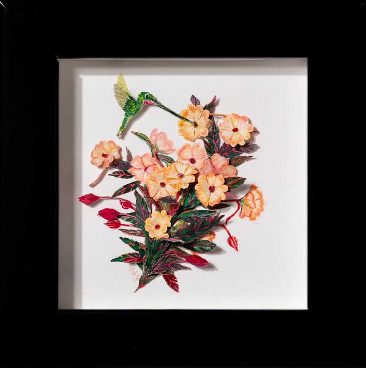 ![]() Humming Among the Flowers - $500 - #1662 Hand Cut Paper, Watercolor, Gouache 3 x 2 3/4 x 1 Melinda Fabian - PA |