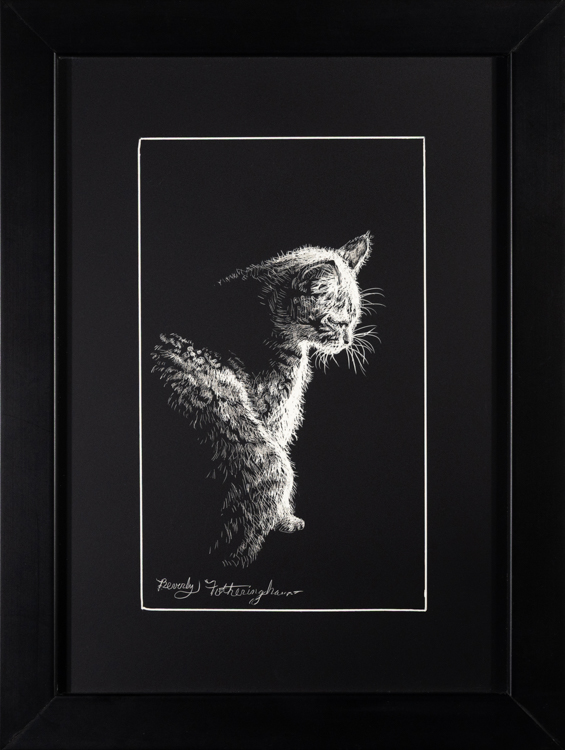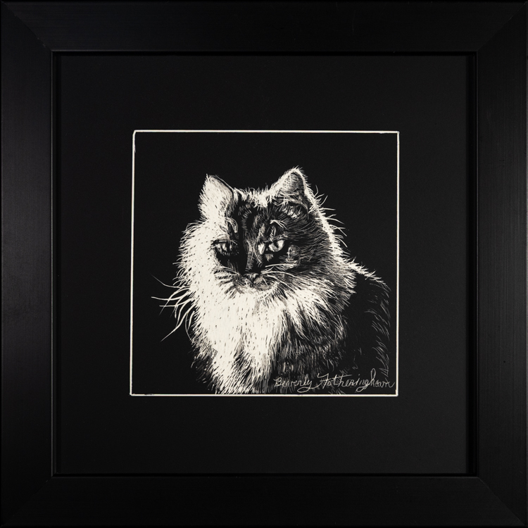 ![]() Purring Softly - $250 - #1762 Scratchboard - 8 x 6 Beverly J. Fotheringham - WA Third Place - Animals |