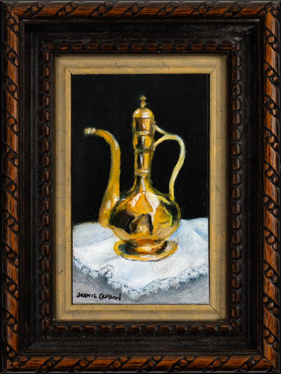 ![]() Turkish Teapot - $400 - #1873 Oil on Ivorine - 4 1/4 x 3 1/4 Jeanie Gordon - OH |