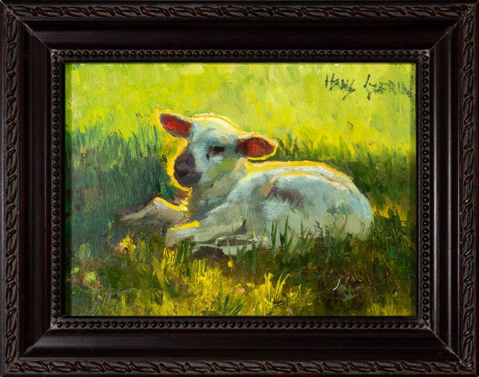 ![]() Backlit Lamb - $250 - #1881 Oil - 5 3/4 x 7 1/4 Hans Guerin - MD |