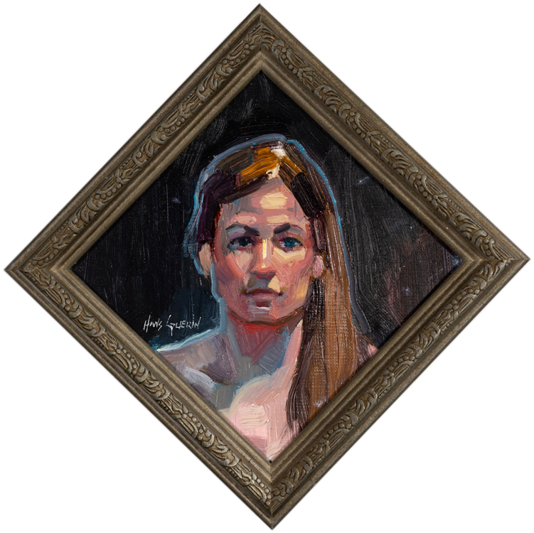 ![]() Portrait in Blue - $250 - #1882 Oil - 6 1/4 x 6 1/4 Hans Guerin - MD |