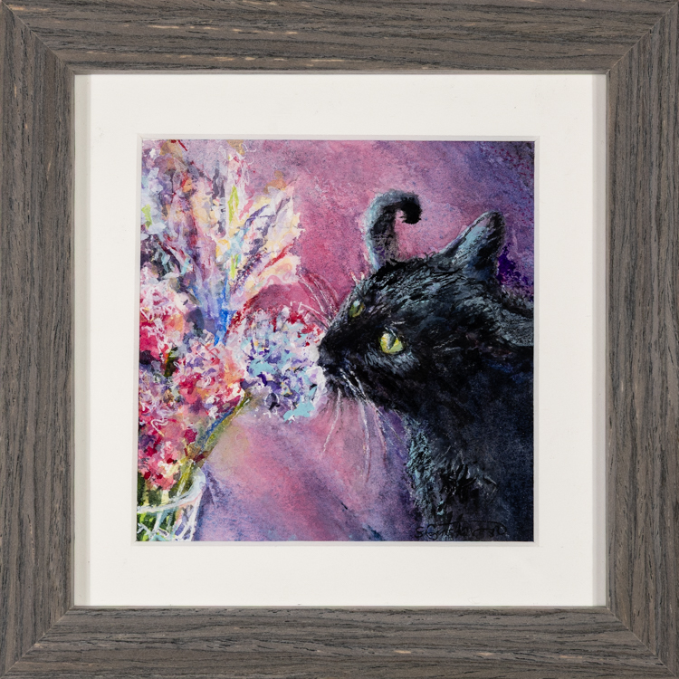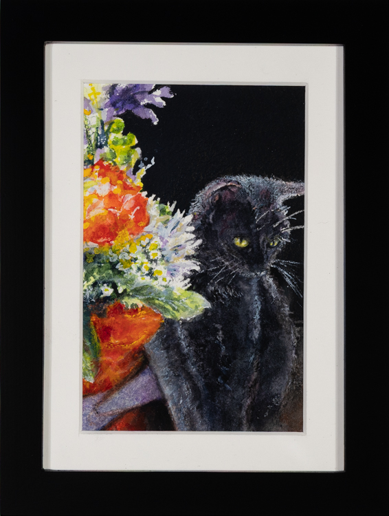 ![]() Blackie With Flowers - $175 - #1892 Watercolor - 8 x 6 Stephanie Gustavson - MD |