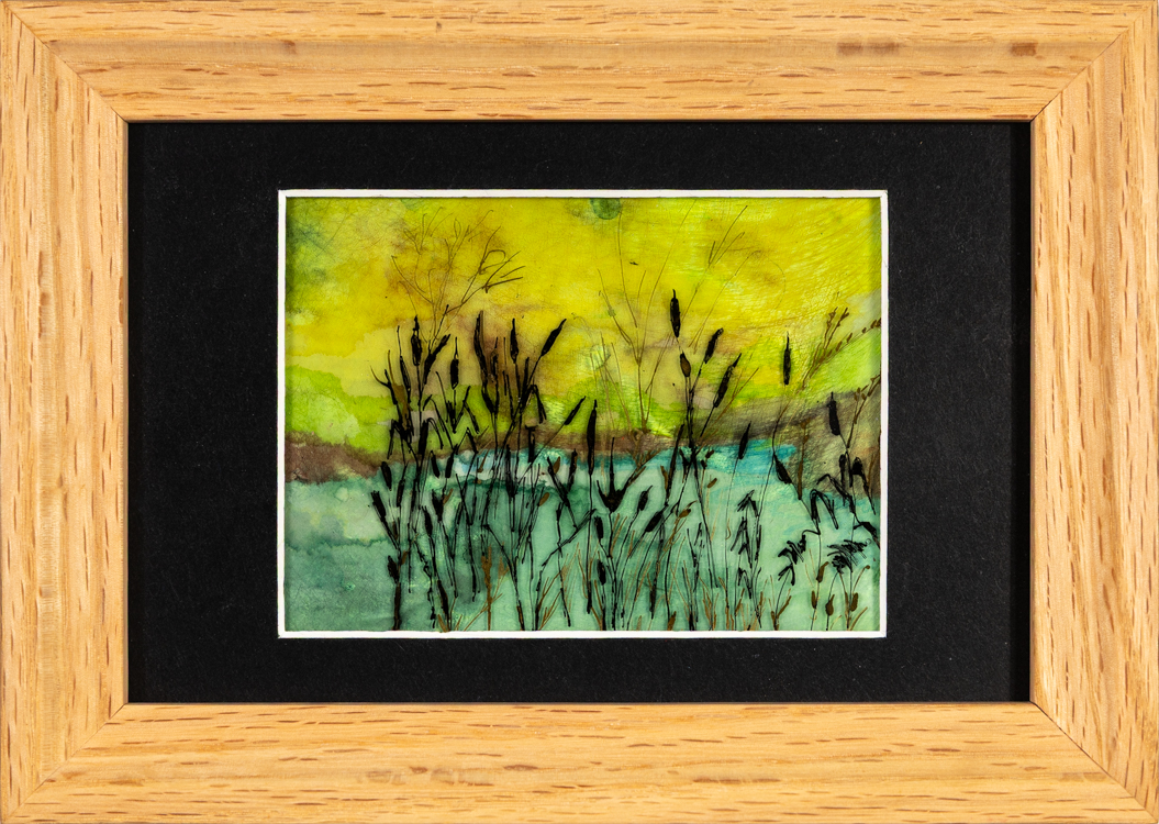 ![]() Cattails, Sunrise - $190 - #2161 Ink (Oil & Alcohol) - 5 x 7 Judith T. Krauthamer - MD |