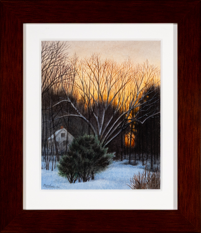 ![]() Dawn of Midwinter - $875 - #2172 Watercolor on Paper - 7 3/4 x 6 3/4 Janet Laird-Lagassee - ME |