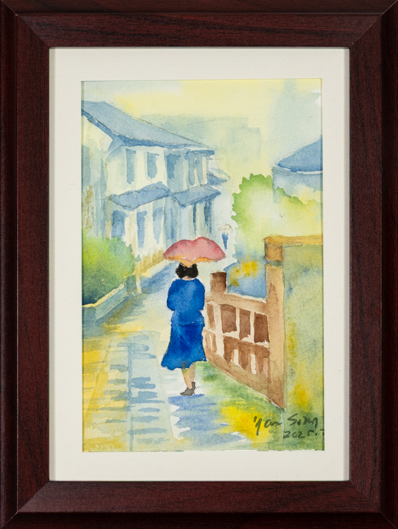 ![]() Walking in the Rain - $260 - #2823 Watercolor on Paper - 8 x 6 Yanyan V. Song - CHINA |