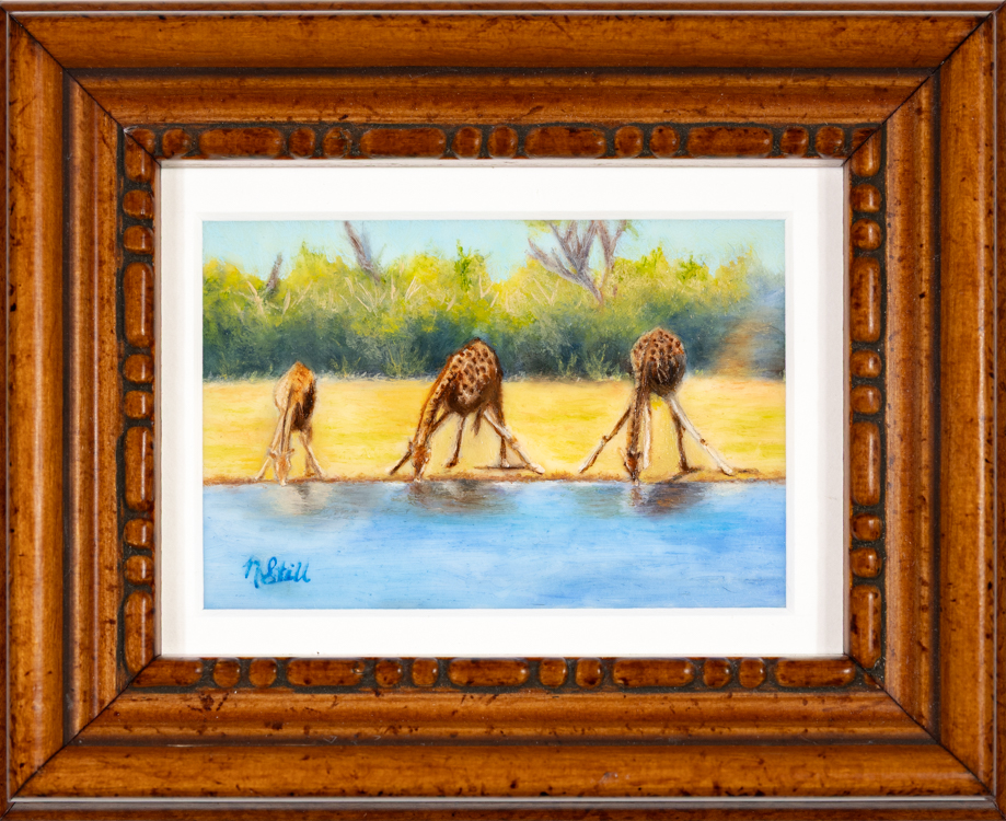 ![]() Giraffes - $200 - #2872 Oil on Ivorine - 4 1/2 x 5 1/4 Nancy Still - FL |