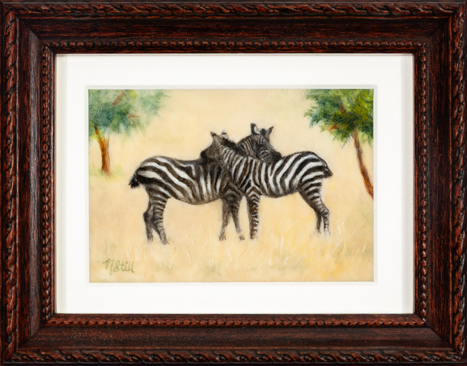 ![]() Zebras - $200 - #2873 Oil on Ivorine - 3 3/4 x 4 3/4 Nancy Still - FL |