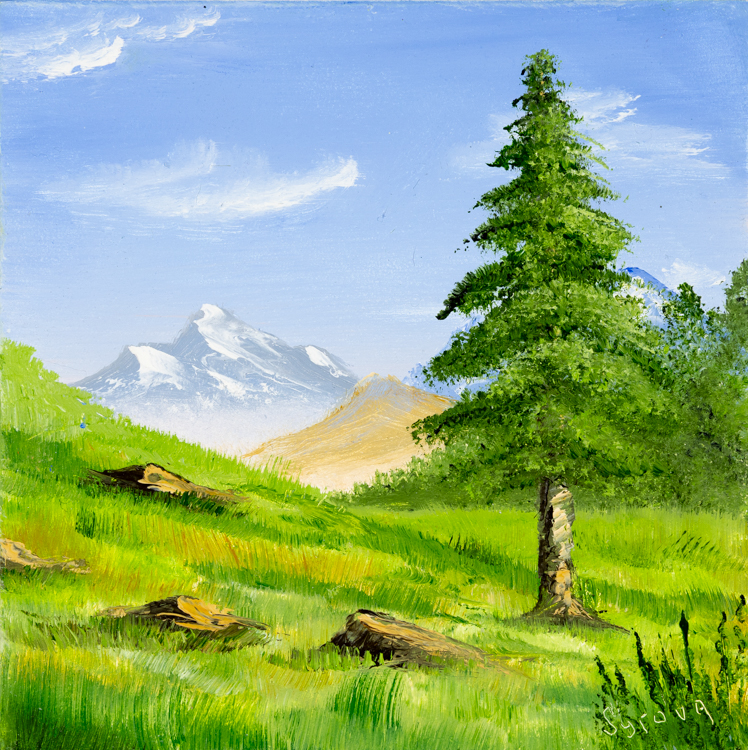 ![]() Pine Tree in the Mountains - $265 - #2912 Oil - 5 x 5 Ludmila Syrova - NY |