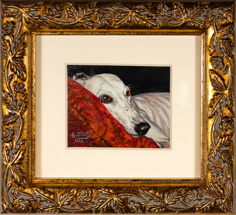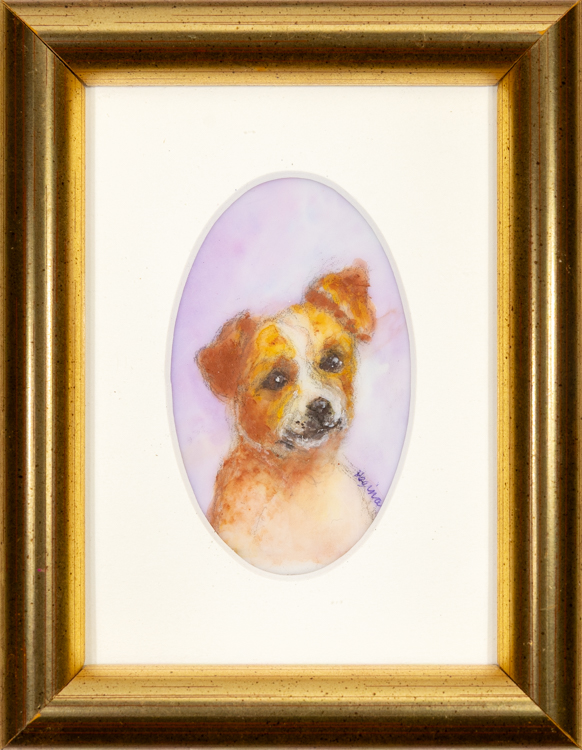 ![]() Sparky - $295 - #2923 Watercolor (Opaque) on Polymin 3 3/4 x 2 3/4 Regina Taormino - CA |