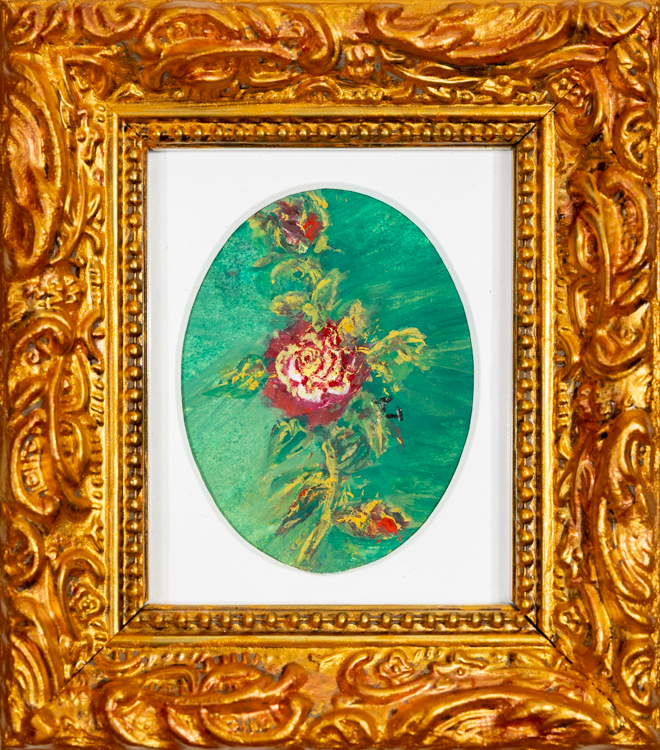 ![]() Rose Jubilee - $475 - #2922 Watercolor (Opaque) on Museum Board 4 1/4 x 3 3/4 Regina Taormino - CA |