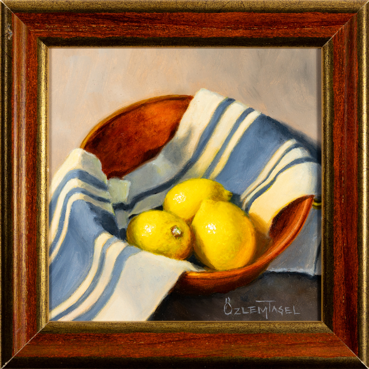 ![]() Lemonade Dreams - $290 - #2932 Oil - 4 3/4 x 4 3/4 Ozlem Tasel - MD Second Place - Still Life |