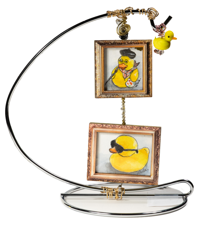![]() Duck Mobile - $100 - #2941 Watercolor/Beads/Wood - 6 x 2 x 1 1/2 Nadine K. Thola - VA |
