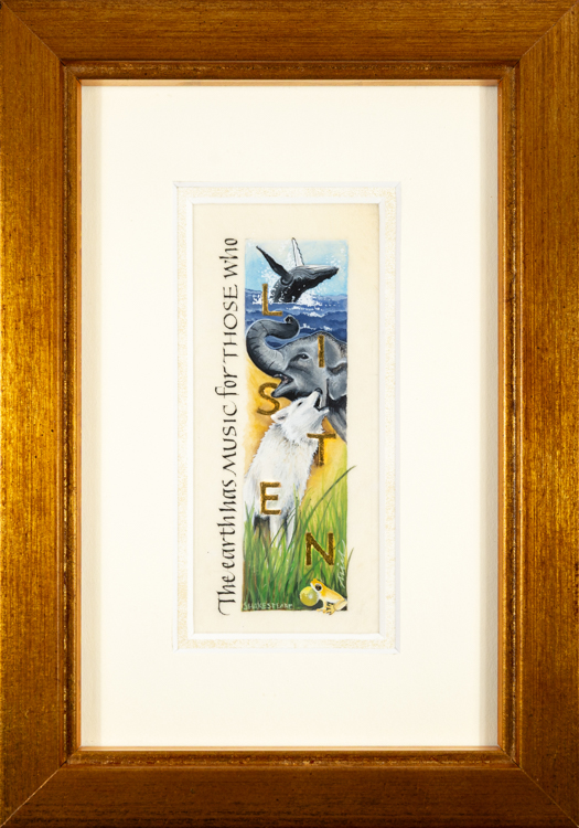 ![]() Listen - $450 - #2981 Watercolor/23k Gold Leaf on Calfskin 6 1/2 x 4 1/2 Sherri A. Trial - PA Second Place-Collage/Mixed Media |