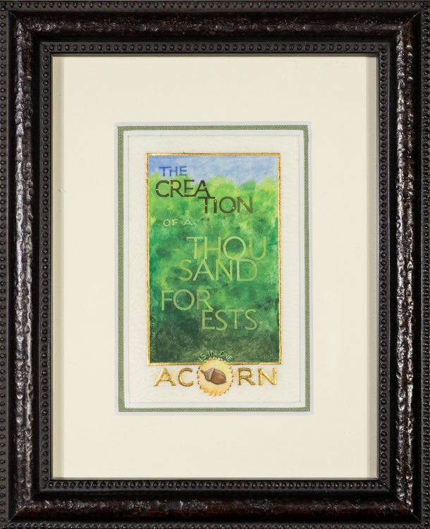 ![]() One Acorn - $350 - #2982 Watercolor/23k Gold Leaf on Goatskin 6 x 5 Sherri A. Trial - PA |