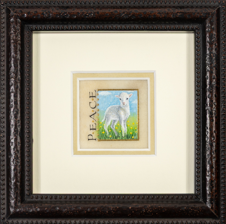 ![]() Peace w/ Lamb - $200 - #2983 Watercolor/23k Gold Leaf on Calfskin 4 1/4 x 4 1/4 Sherri A. Trial - PA |