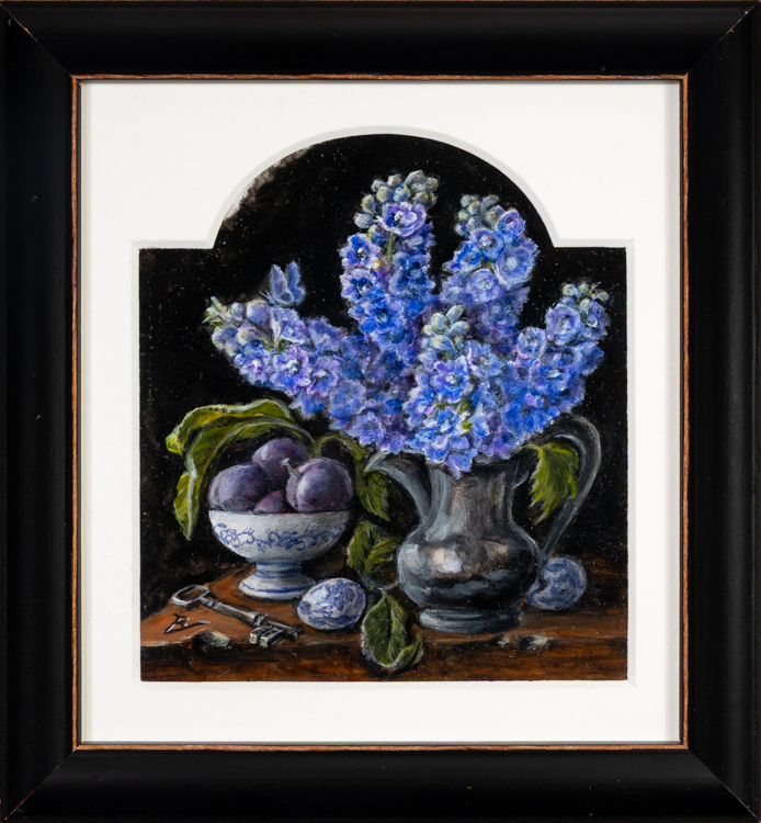![]() Delphinia in a Pewter Jug - $400 - #3001 Oil on Dura-Lar - 5 1/2 x 5 Barbara Valentine - GREAT BRITAIN |