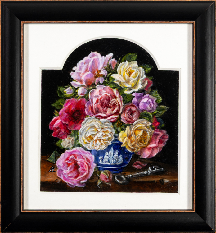 ![]() Roses in a Wedgwood Vase - $400 - #3002 Oil on Dura-Lar - 5 1/2 x 5 Barbara Valentine - GREAT BRITAIN Best in Floral |