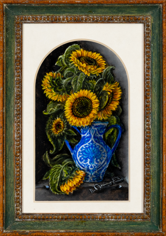 ![]() Sunflowers in a De Morgan Vase - $450 - #3003 Oil on Dura-Lar - 7 x 5 Barbara Valentine - GREAT BRITAIN |