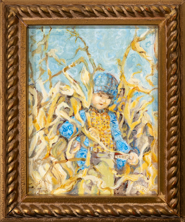 ![]() Cousin in a Cornfield - $850 - #3081 Oil - 4 x 3 1/4 Susan C. Weber - NY |