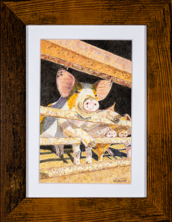 ![]() Cuteness in the Pigpen - $595 - #3162 Colored Pencil - 8 1/2 x 6 1/2 Diana M. Wyles - CA |