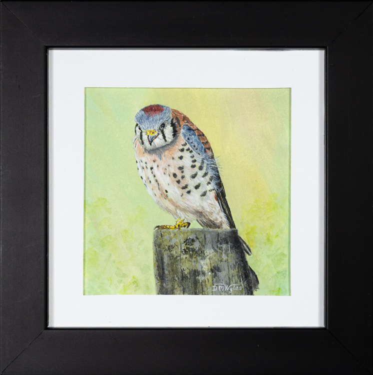 ![]() Fixated - American Kestrel - $550 - #3163 Acrylic - 5 1/4 x 5 1/4 Diana M. Wyles - CA |