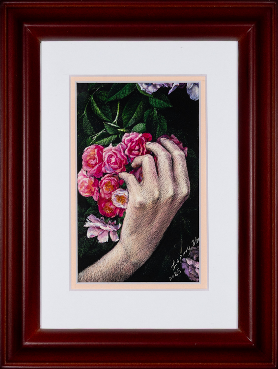 ![]() Memories in Pink - $300 - #3181 Scratchboard - 8 1/2 x 6 1/2 Liping Zhu - NC |